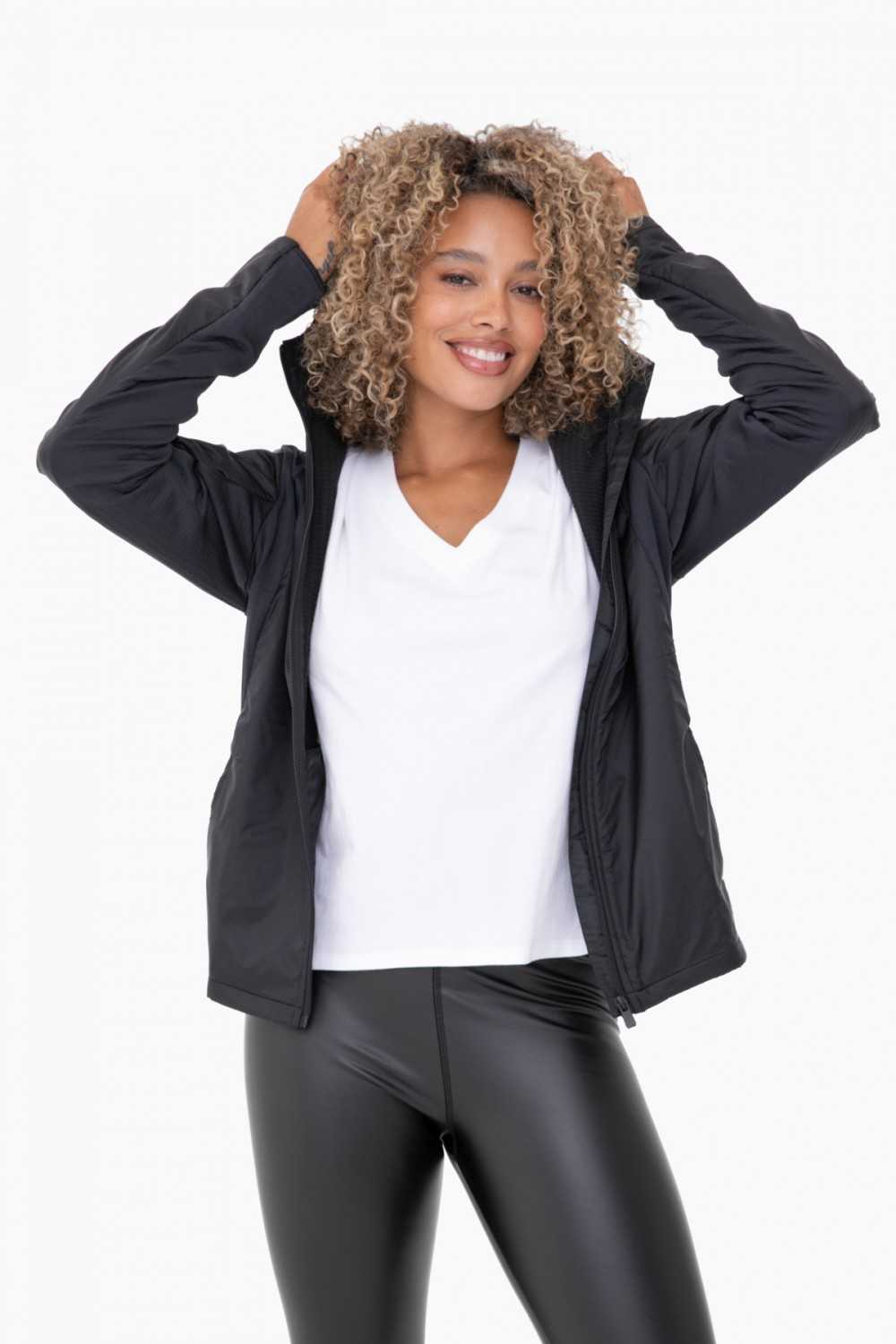 With a jacquard backed fleece for lightweight insulation, this active jacket is ideal for any active lifestyle. It features a woven front, back and sleeve panels, a full front zip, hand pockets, and a reflective strip at the center back for visibility.