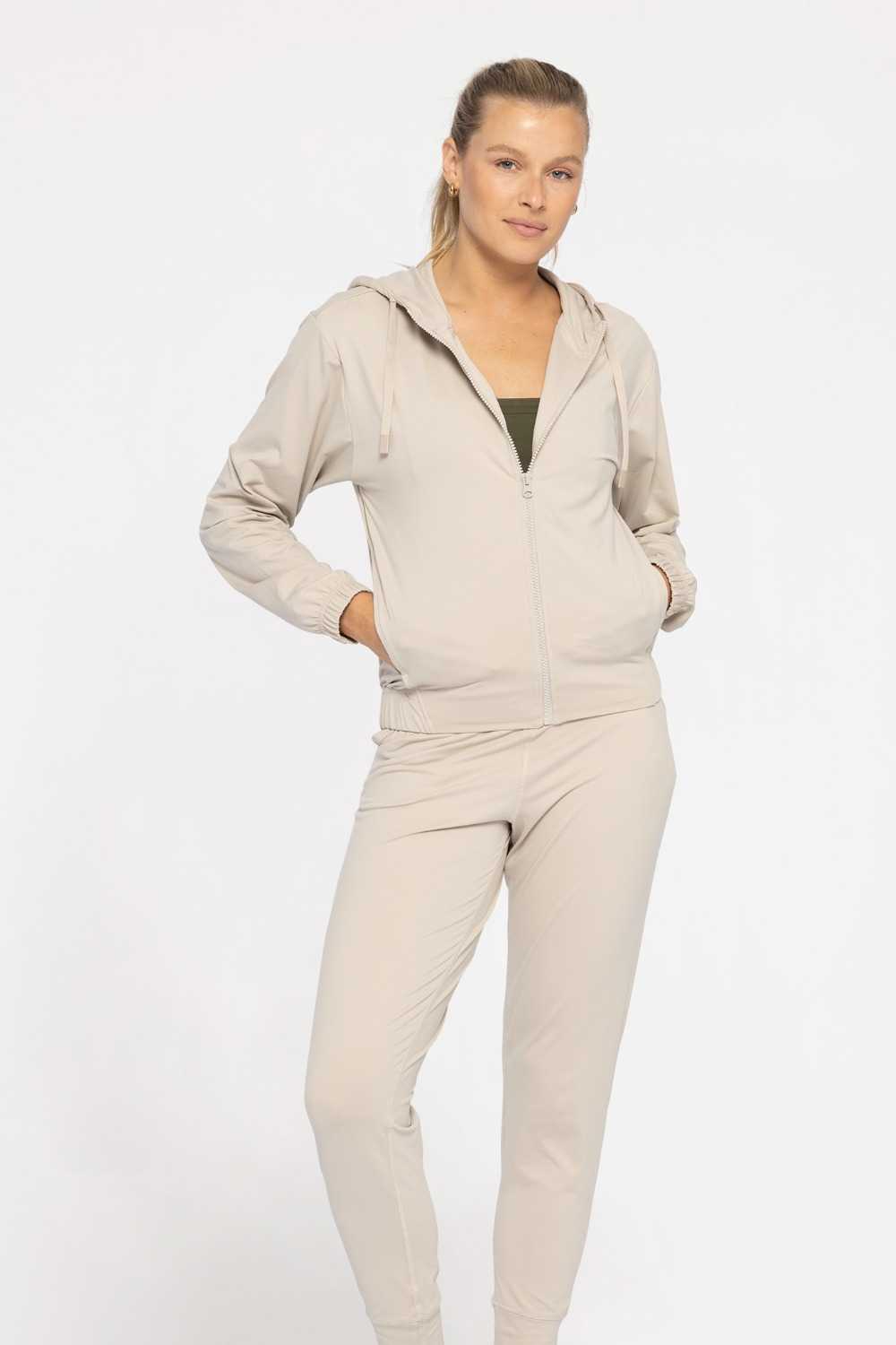 FlexComfort Hooded Zip Jacket Tan