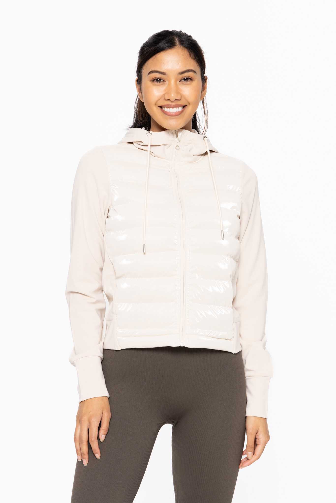 Stay warm and stylish in our hybrid micro fleece jacket! With a smooth outer with padded front panels in a matte leather look and soft micro fleece inner, this jacket has a full front zip, zippered hand pockets, a 3 panel hood, and thumbholes for maximum coziness.