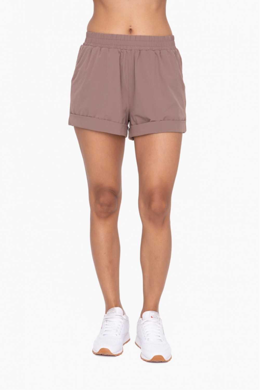These athleisure shorts have an elasticized waistband, pockets, and cuffed legs making them chic enough to wear out or while working out.