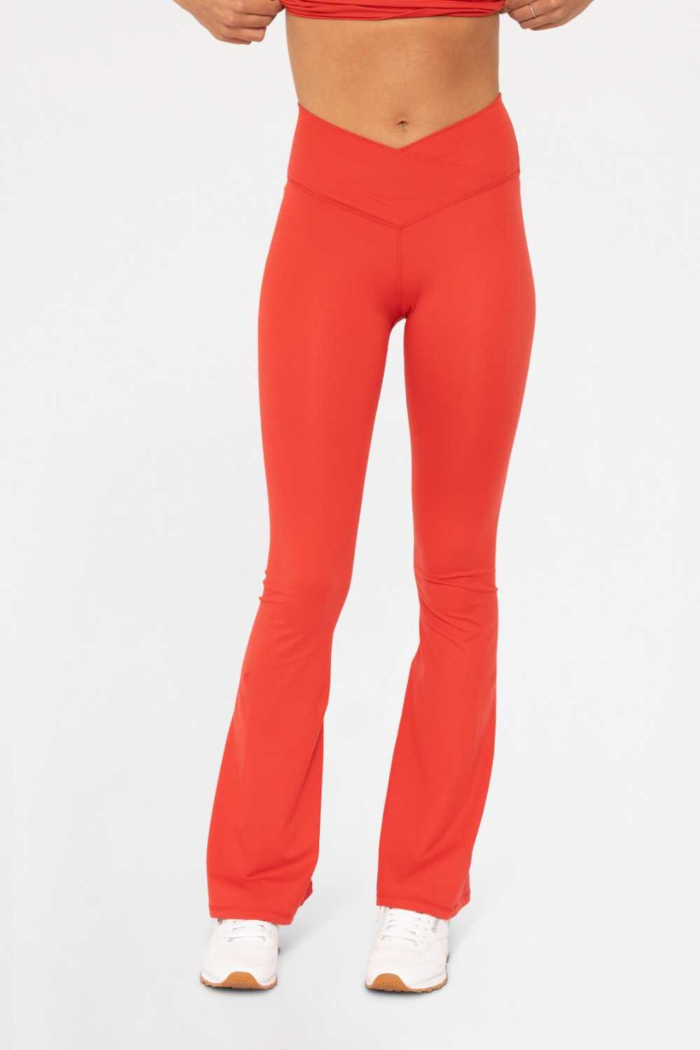 These high waisted leggings have a flattering crossover waist design. Made in our very soft, poly/spandex blend, Venice fabric for added comfort. The flared leg cut allows for better mobility. Perfect for your weekly yoga class!