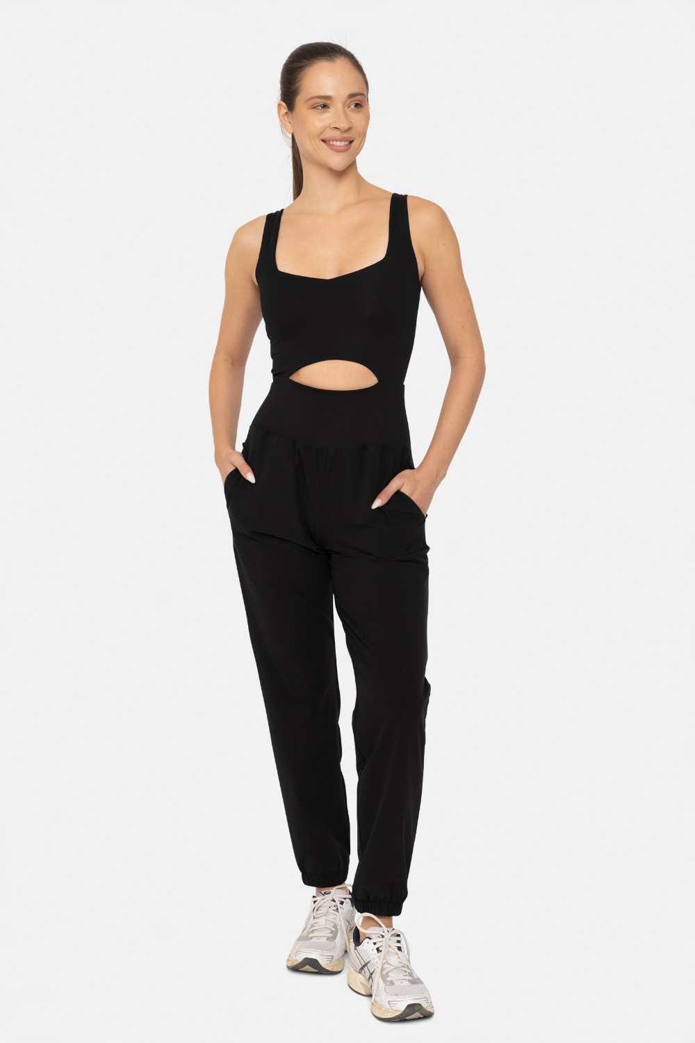 Product name GREEN Keyhole Cut Out Active Jumpsuit Black