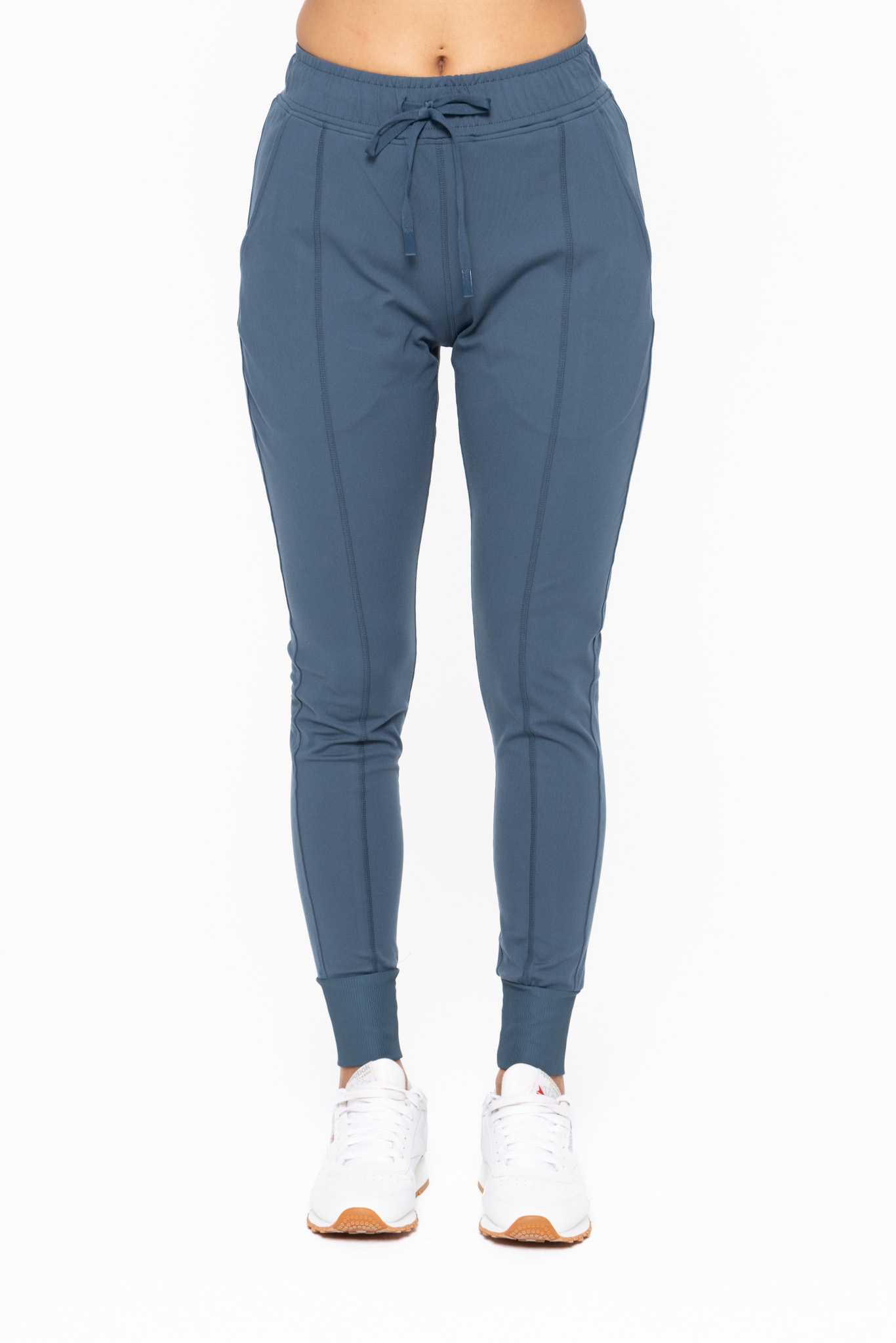 Comfy and functional, these slimming joggers feature long side pockets, a drawstring at the waist, and ribbed cuffs.