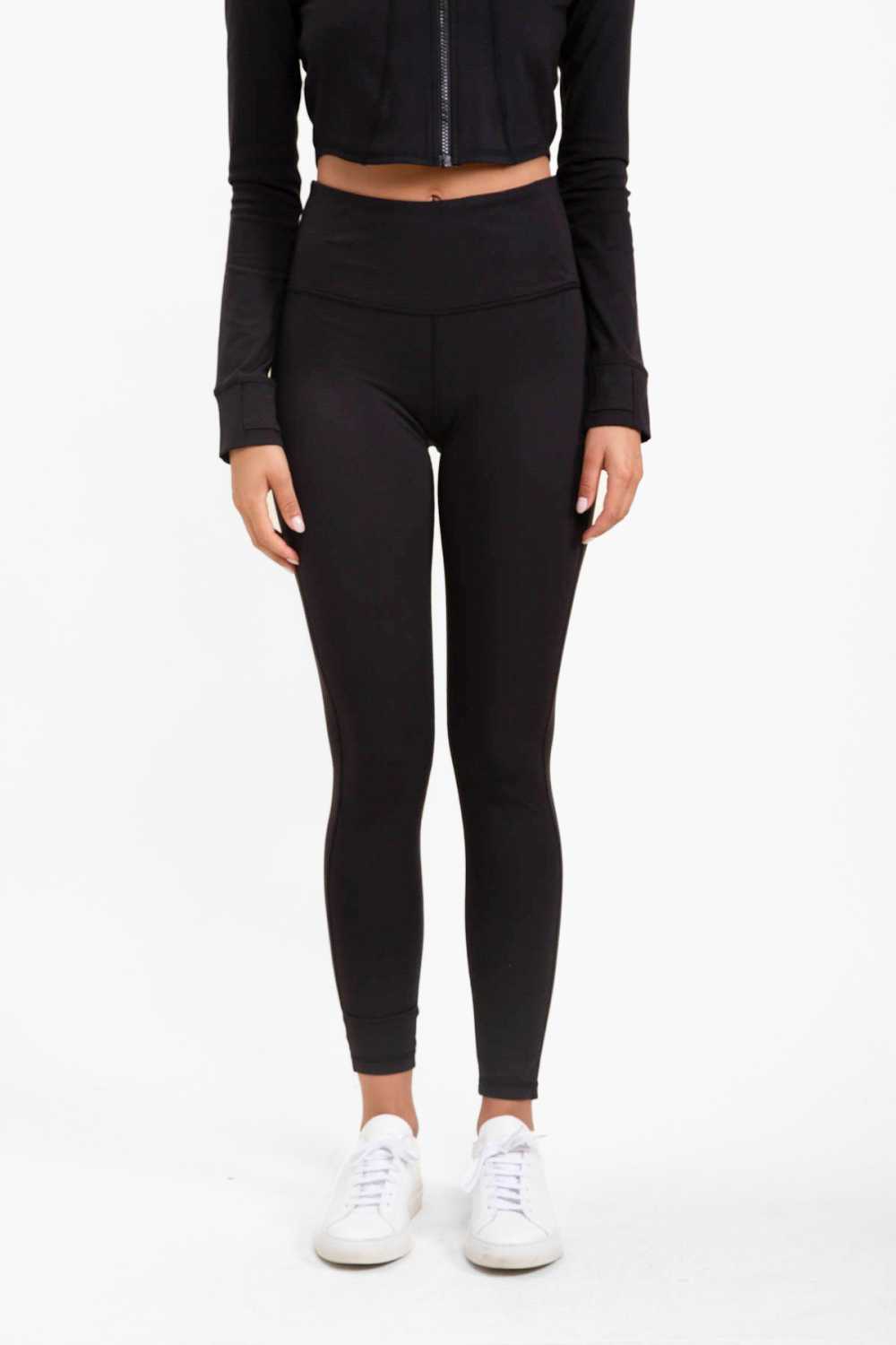 No side pockets, no back zippered pouch, just straight-up, good ol` essential full-length, eco-friendly leggings with the Mono B signature high waistband for abs support and hidden pocket.