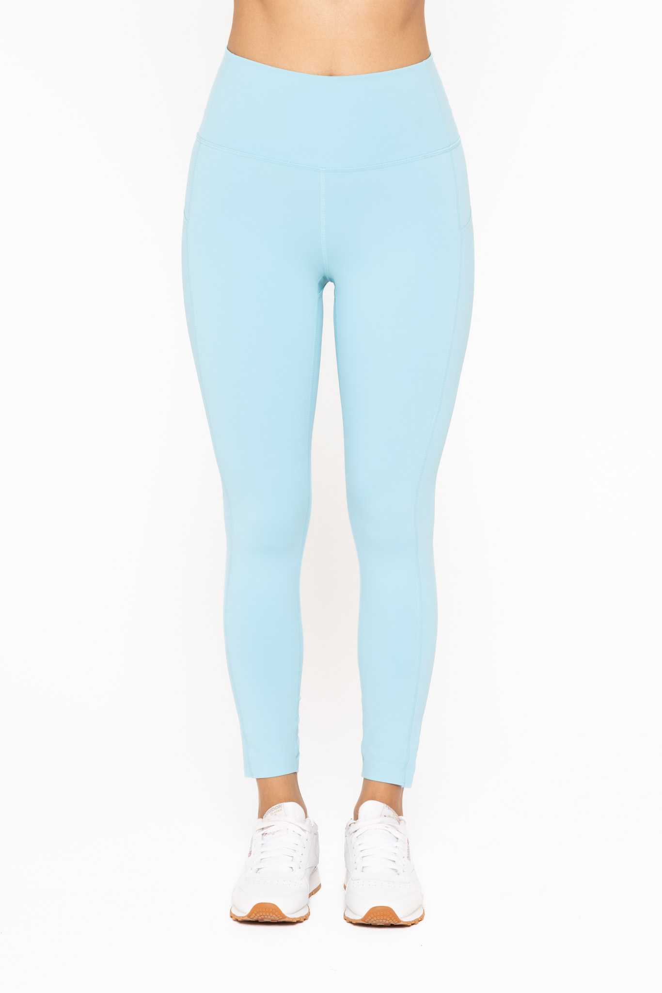Made of solid-colored, four-way stretch fabric, this pair of leggings features laser-cut edges and a hybrid of non-sewn panels for the pockets. The result is lighter, more flattering leggings without the unnecessary bulging. The fold-over waistband is stitch-free for a more comfortable fit.