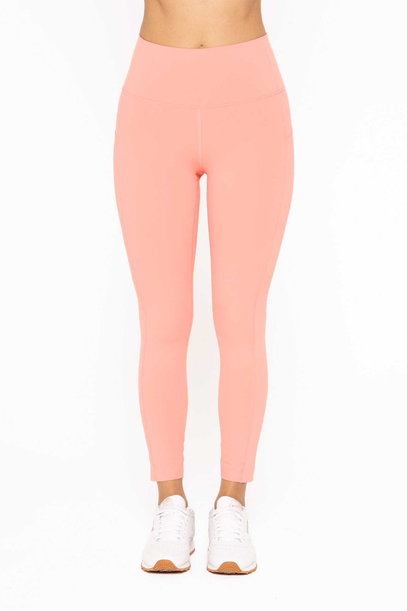 Made of solid-colored, four-way stretch fabric, this pair of leggings features laser-cut edges and a hybrid of non-sewn panels for the pockets. The result is lighter, more flattering leggings without the unnecessary bulging. The fold-over waistband is stitch-free for a more comfortable fit.