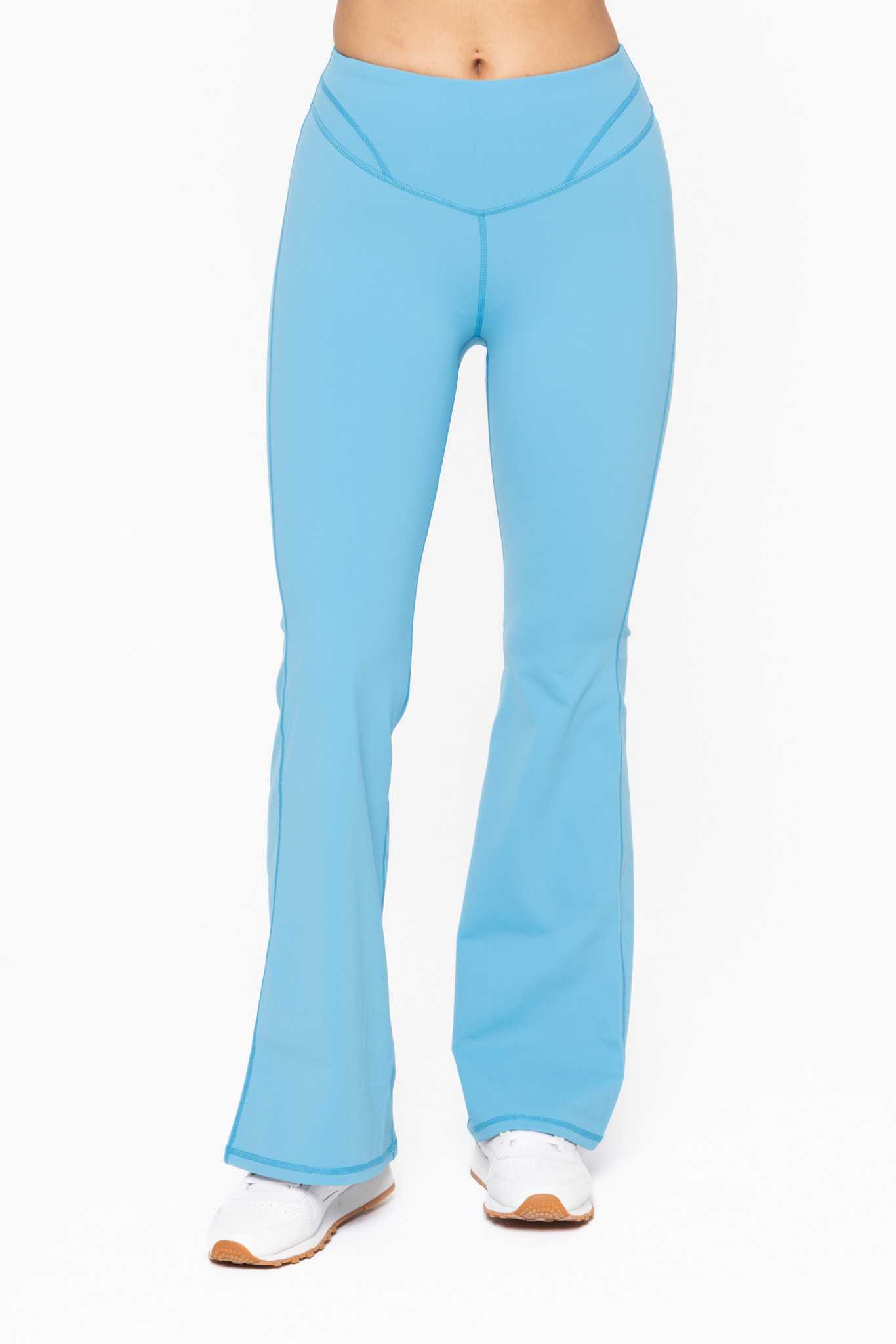 Step up your active wear game with our flare leggings. Crafted with a wide V-shape waistband both front and back, providing tummy control and accentuating your curves. Embrace comfort and style during your workouts.