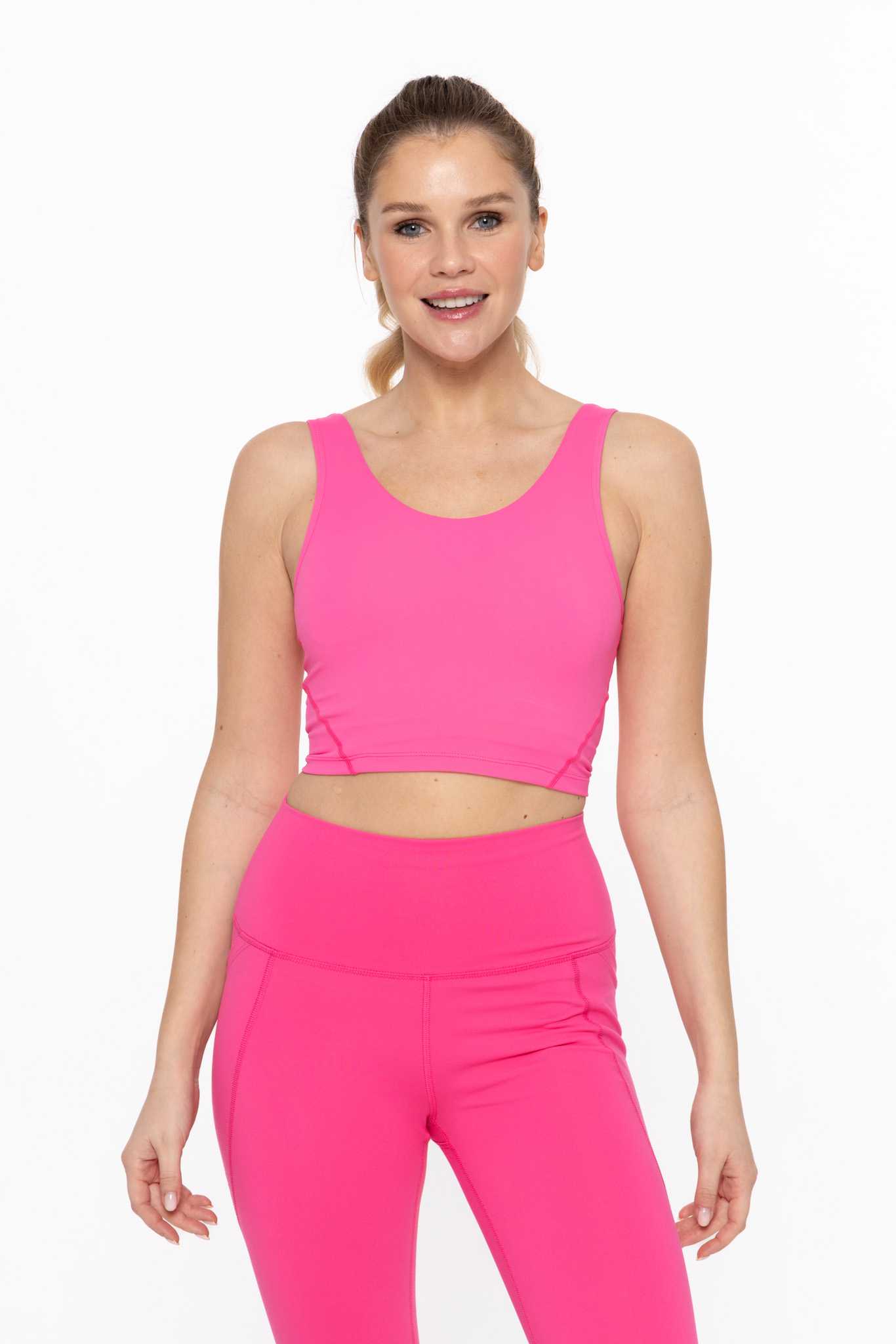 This sports bra features an elongated body for more coverage on the mid-section, as well as slanted side seamlines for a streamlined silhouette.