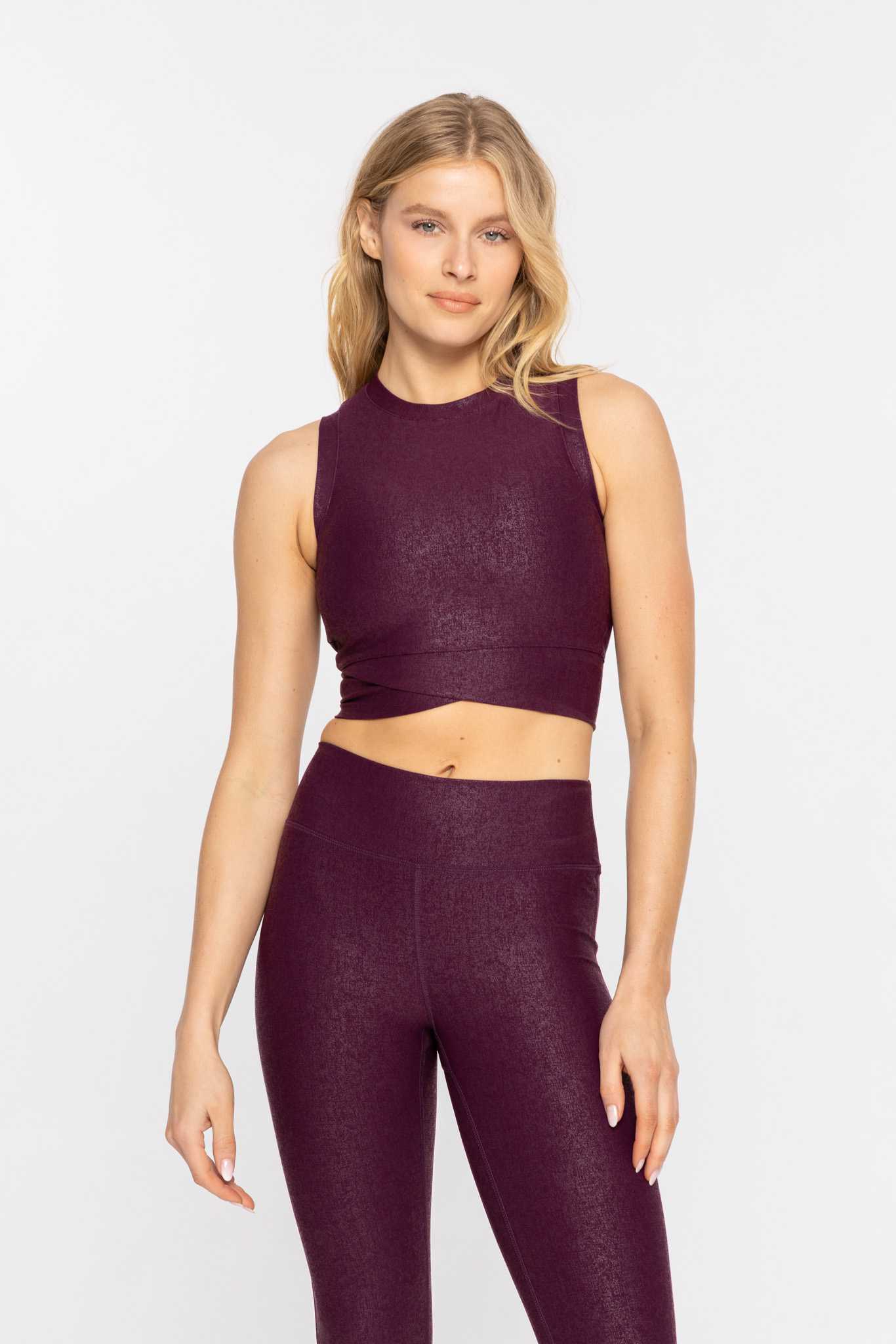 Whether you're at the gym or out with friends, this cropped high neck active top will be your go to pick! Made from the Mono B favorite foil print fabric, it features a built in bra and crossover under bust band to snatch you in at the waist!
