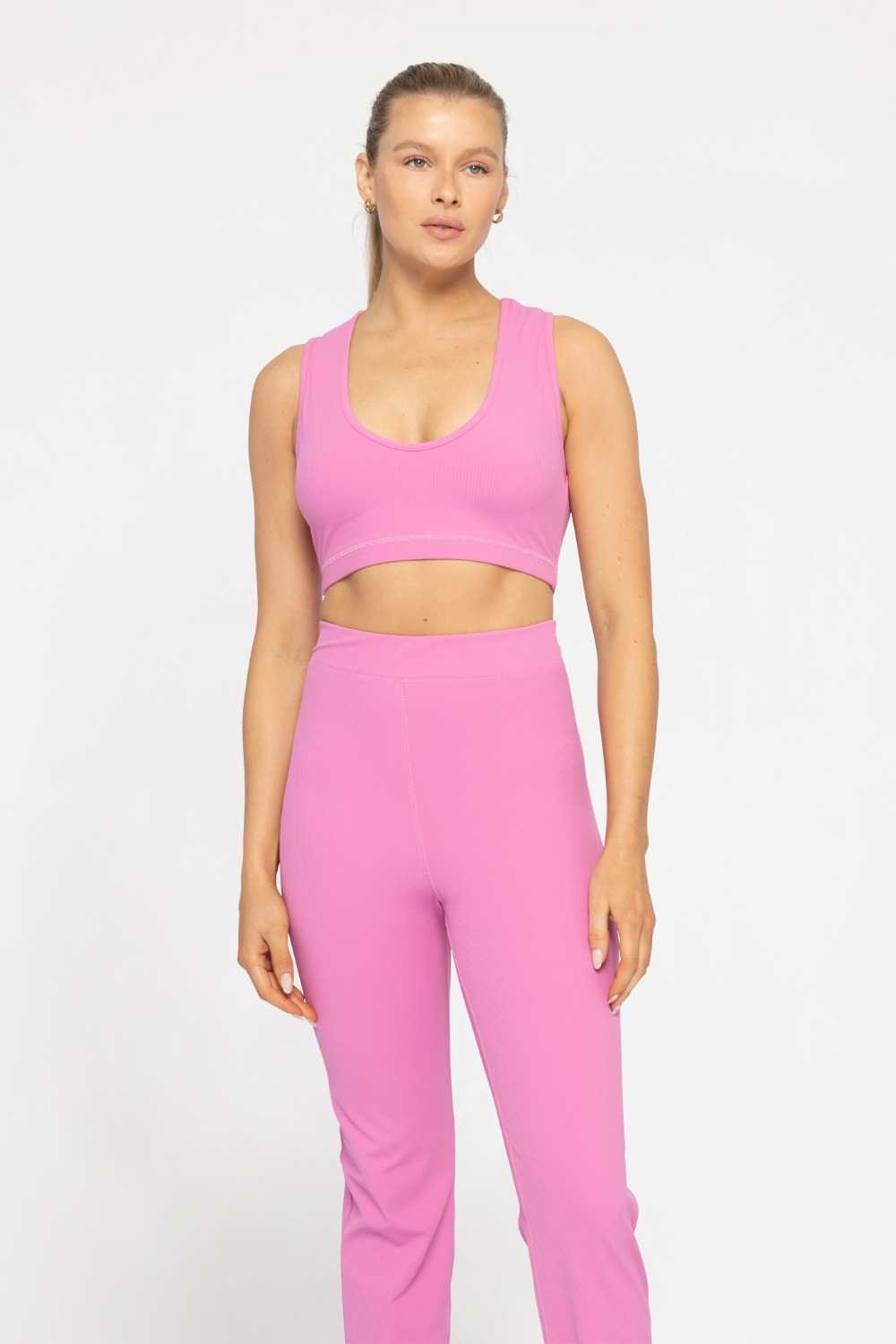 A stylish ribbed V-neck sports bra featuring removable bra pads for customizable support. The keyhole cross-back detail adds a unique touch and enhances breathability, perfect for both workouts and everyday wear.