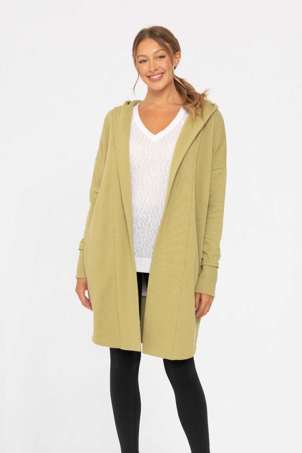 Open Front Longline Hoodie Cardigan Cactus green