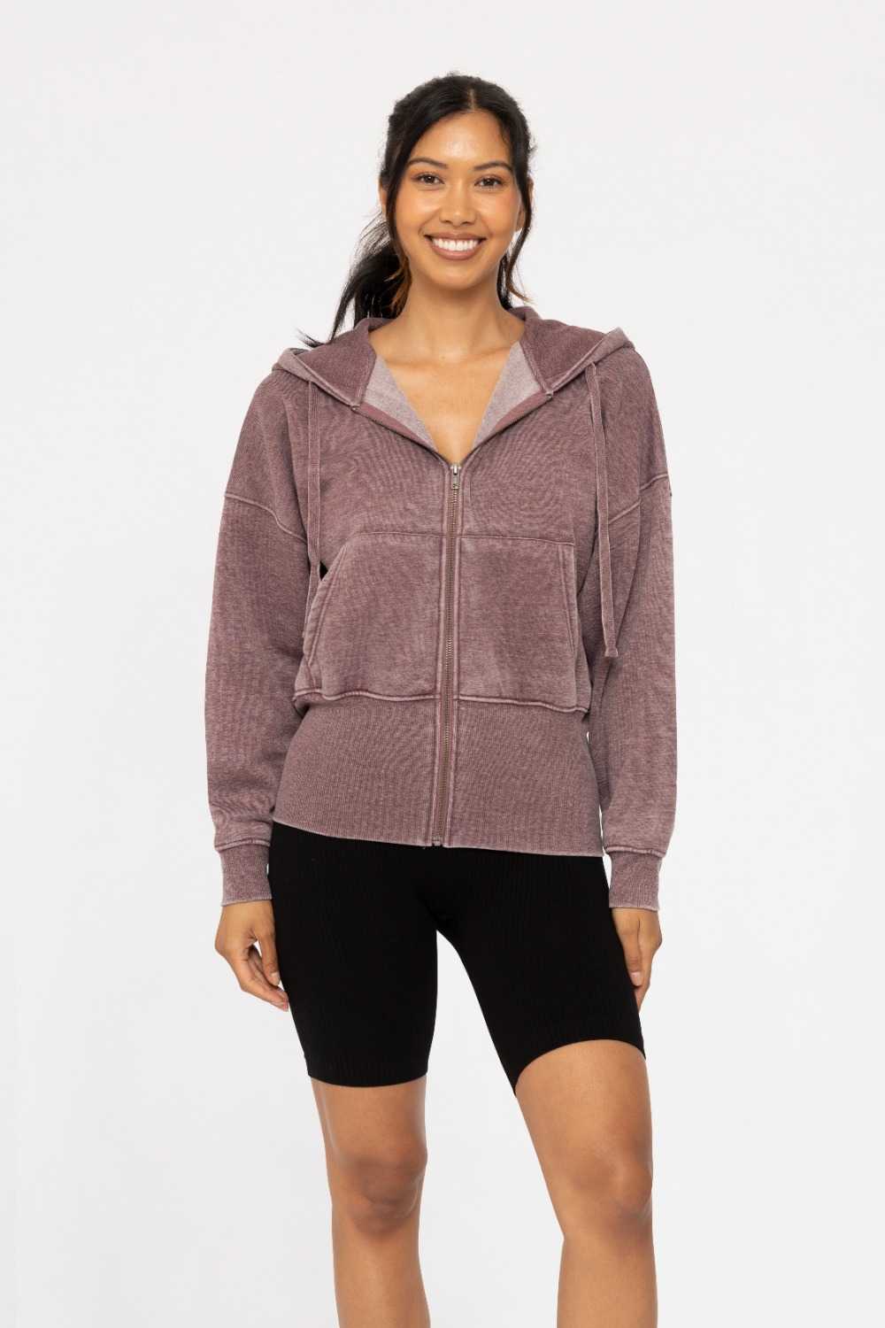 Fleece Hoodie Jacket with Tapered Sleeves Plum 24