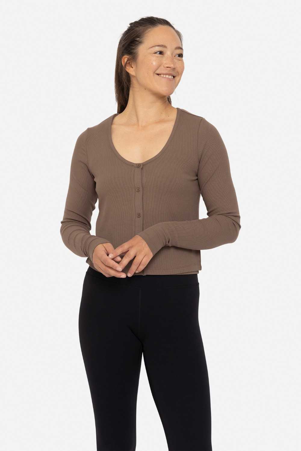 This sweet and simple cardigan is perfect for layering or wearing on its own. Crafted from soft micro rib fabric, this long sleeve cardigan hugs your silhouette with a flattering fitted body and a classic scoop neck. The functional button-up closure adds versatility, making it the perfect piece for effortless styling, whether you're dressing up or keeping it casual.