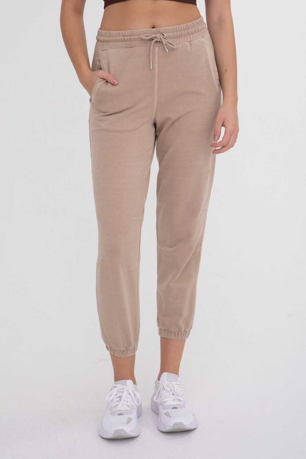 These comfortable joggers have a drawstring waist, have side pockets, and a swoop back seam which helps show off your figure. They are garment-dyed to give you that chic lived-in look.