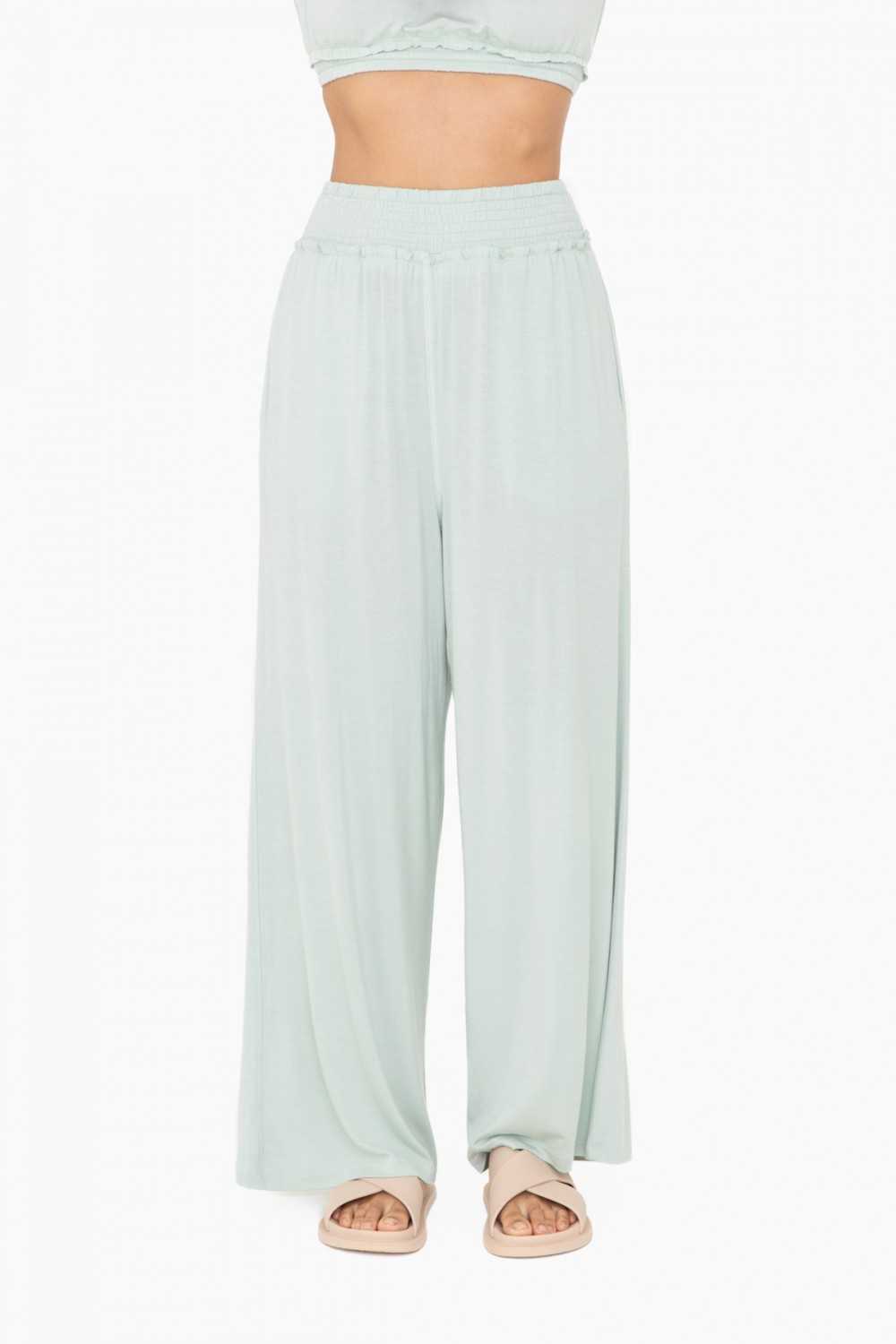 Smocked Waist Wide-Leg Pants
