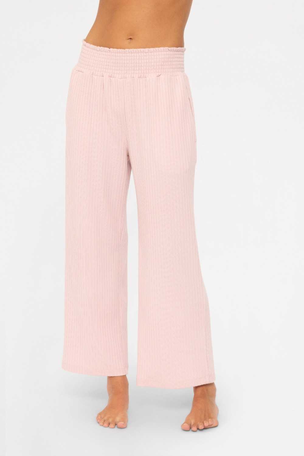 Product name Smocked Waistband Ribbed Wide Leg Pants Cool mauve