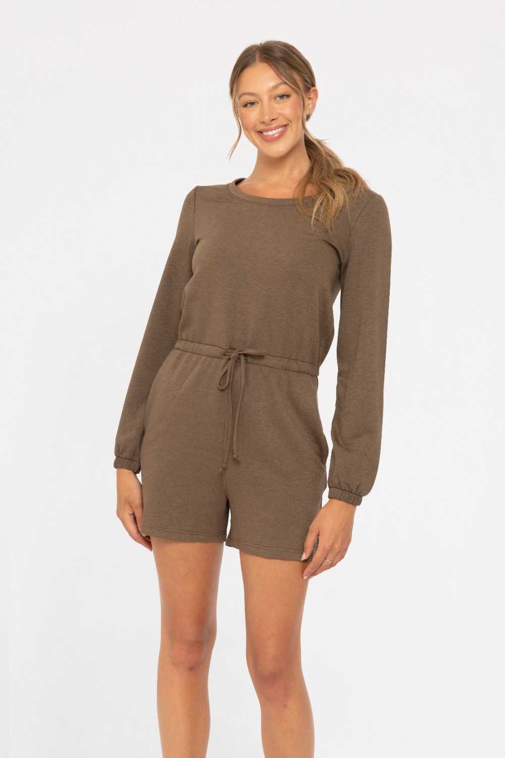 Unwind in ultimate comfort with our Lounge Romper. This cozy piece features long sleeves with elastic cuffs at the wrists for a snug fit and a drawstring waist for adjustable comfort. The keyhole back design allows for easy on and off, while the inseam pockets add a touch of practicality. Perfect for lounging at home or casual outings, this romper is made from soft, breathable fabric to ensure you stay comfortable all day long.