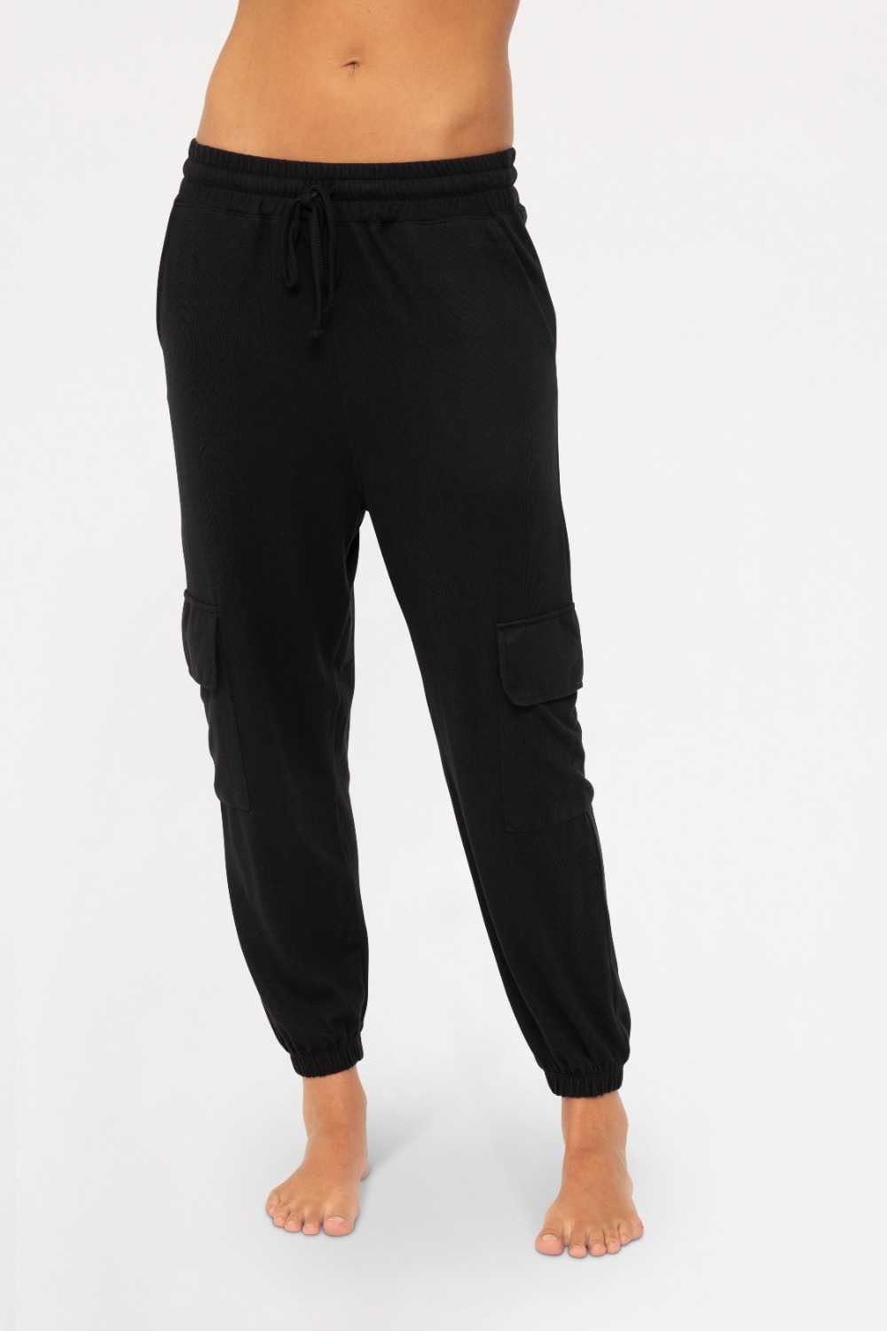 Best-selling hacci fabric cargo jogger lounge pants. Features an elastic encased waistband with drawstring, elastic cuffs, flap cargo pockets at the side leg, and slanted side pockets. Perfect for lazy days when you still want to look put together.