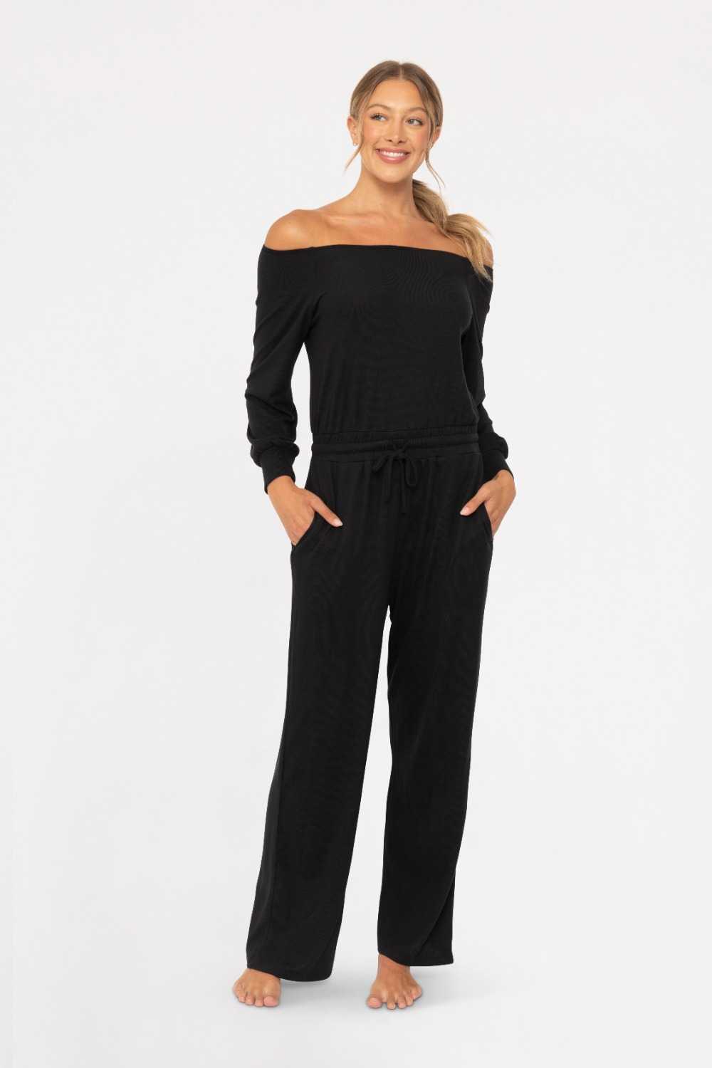 Off-the-Shoulder Lounge Jumpsuit Black