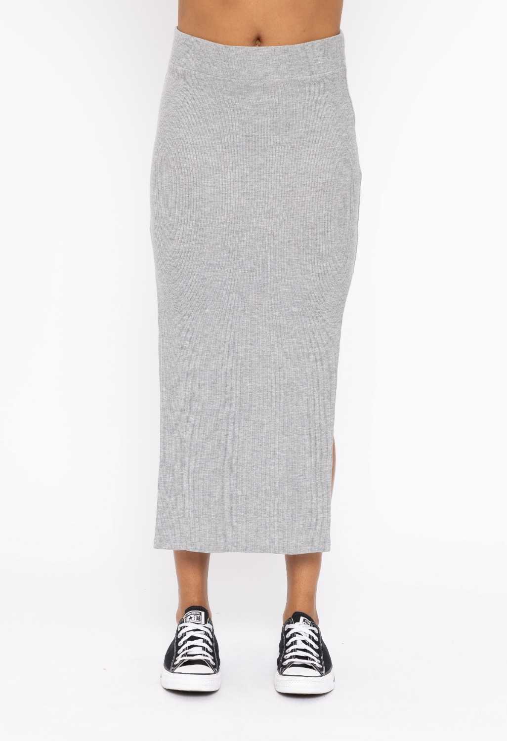 Product name Ribbed High Waisted Midi Skirt Heather grey