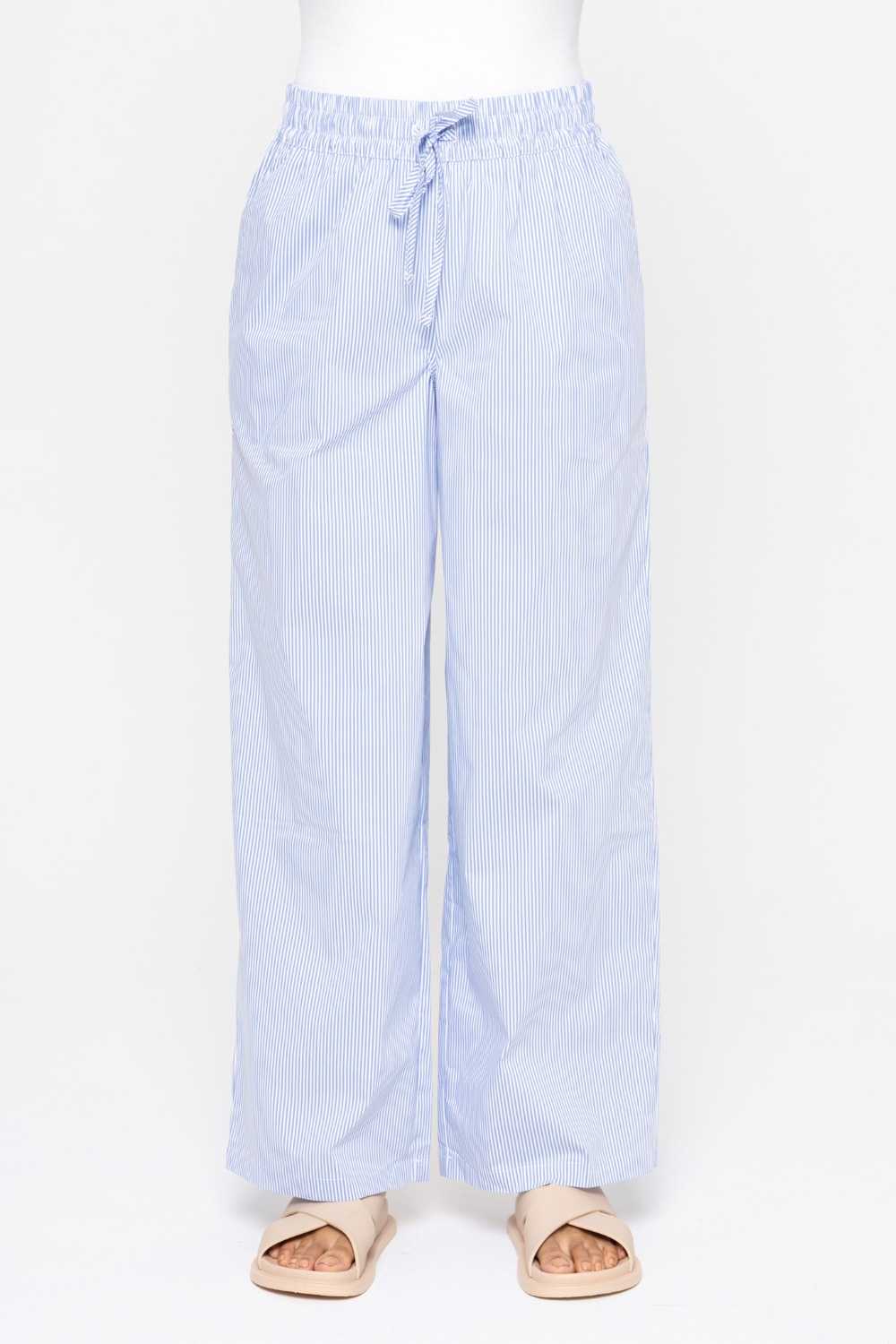 Designed with a relaxed yet elegant silhouette, these wide-leg pants are where comfort meets sophistication. They're made from a stretch poplin fabric and feature an elastic encased waistband with self-ties for a customizable fit, and side pockets.