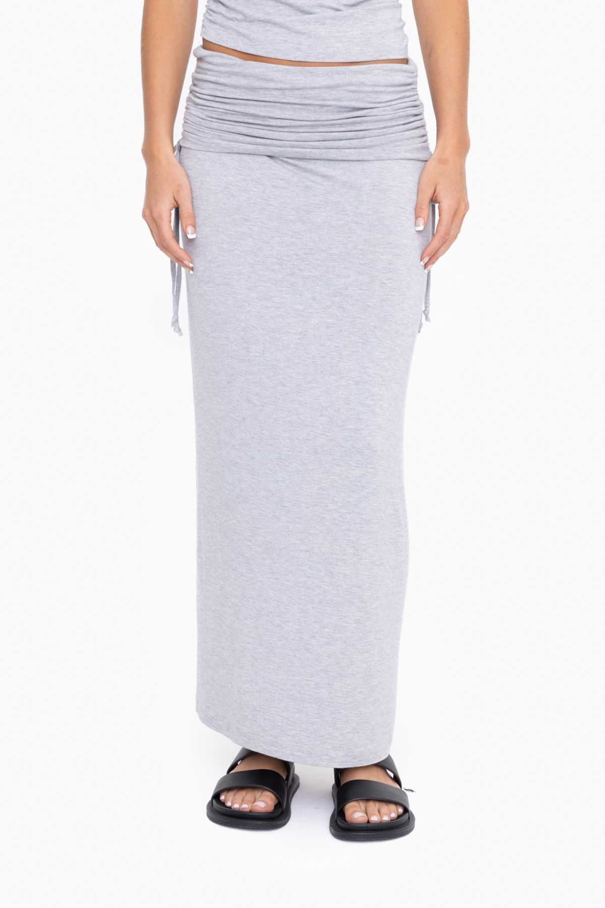 Made with the softest rayon blend fabric, this 2-in-1 maxi skirt is the perfect transitional piece for any season! Wear it as a maxi skirt or bring it up and wear it as a strapless midi dress. It features a fold over waistband with cinch ties on either side and a slit at center back.