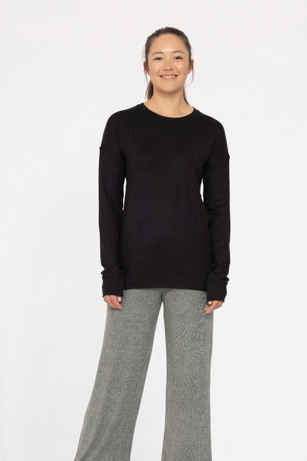Brushed Crew Neck Long Sleeve Top Black