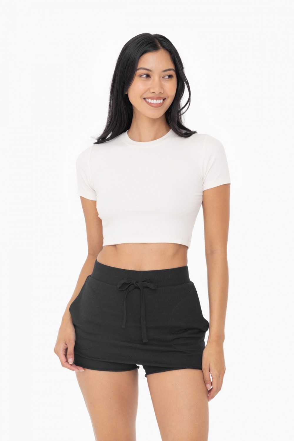 Whether as a workout top (worn over a Mono B sports bra and a pair of Mono B leggings) or as a cute top (matched with a denim item), this cropped tee is as versatile as it is comfortable. It has short sleeves, a rounded neckline, and a form-fitting silhouette.