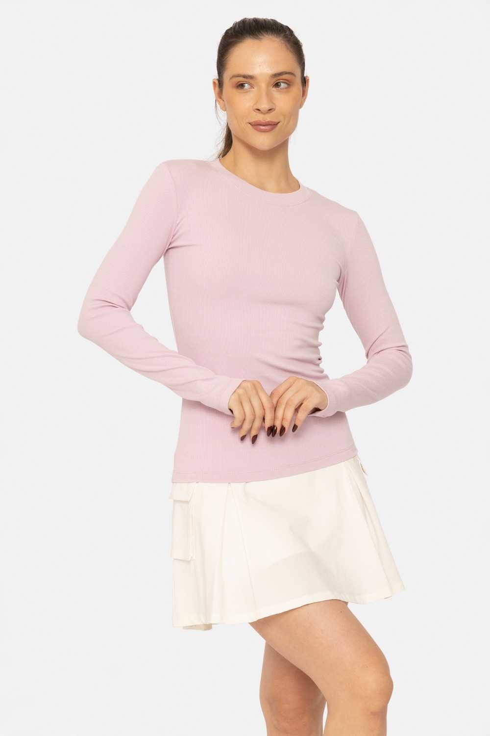 Essential Long-Sleeved Micro-Ribbed Athleisure Top Lilac 25