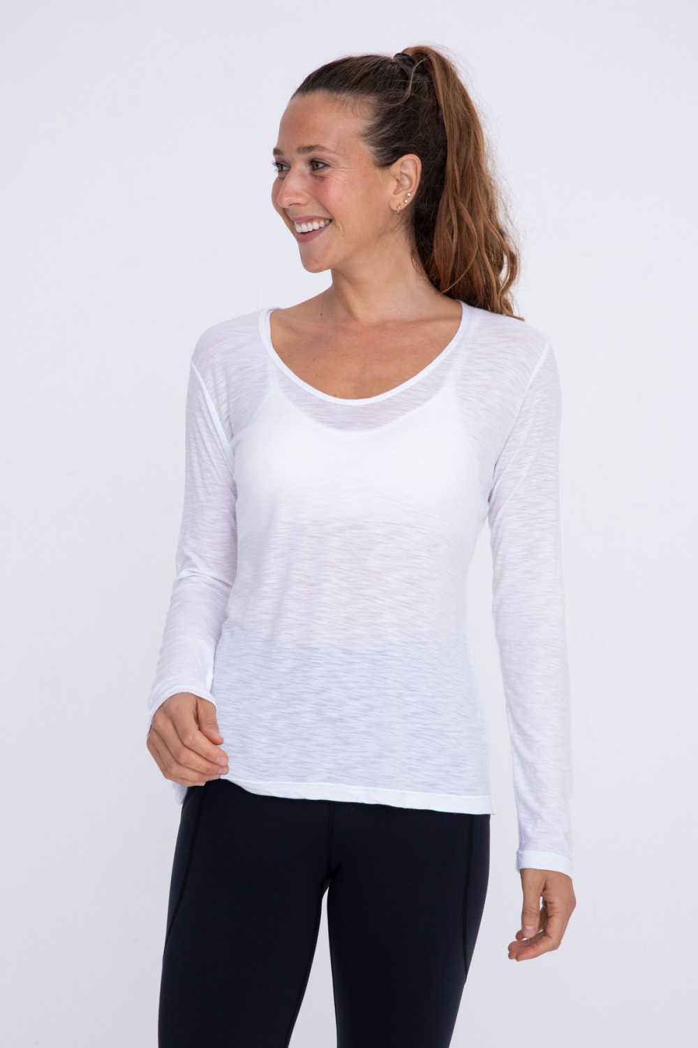 Keep it simple in this classic. Our core style long sleeve tee features a modern u-neck, a boxy loose fit, a vintage style slub texture, and raw edge trim at the seams. The super soft modal blend fabric will keep you comfortable all day!