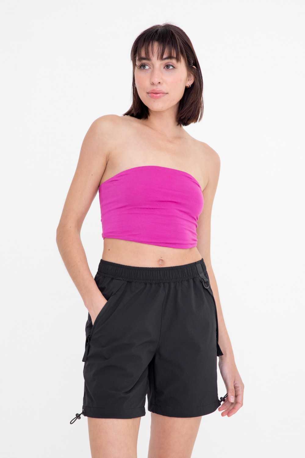 In a silky rayon jersey, this classic bandeau top has elastic at the top and bottom to prevent it from falling down or riding up. This versatile piece makes for easy layerying.