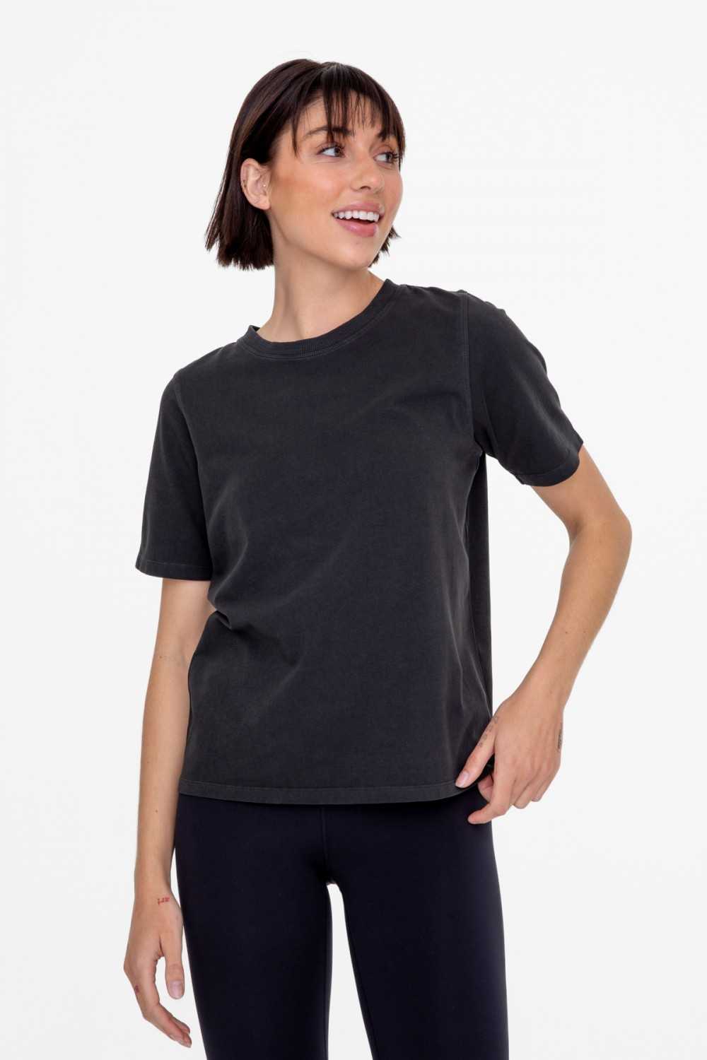 A tried and true classic. This simple tee is made with supima cotton that is pigment dyed for a rich color and features a boxy fit and ribbed neckline.