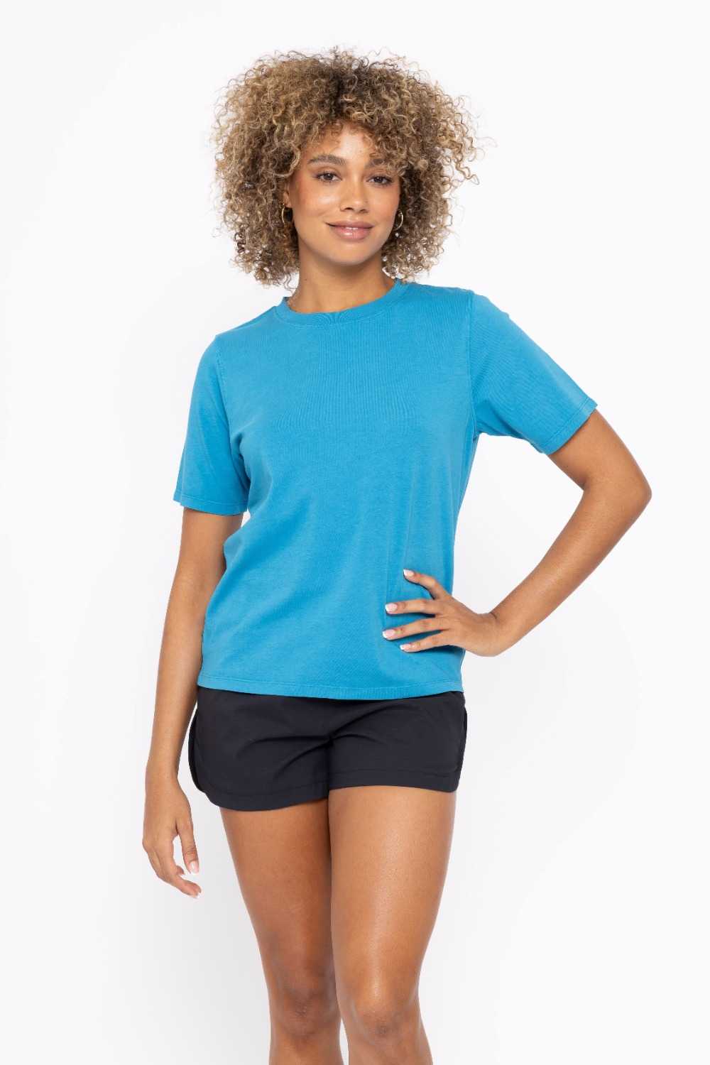 A tried and true classic. This simple tee is made with supima cotton that is pigment dyed for a rich color and features a boxy fit and ribbed neckline.