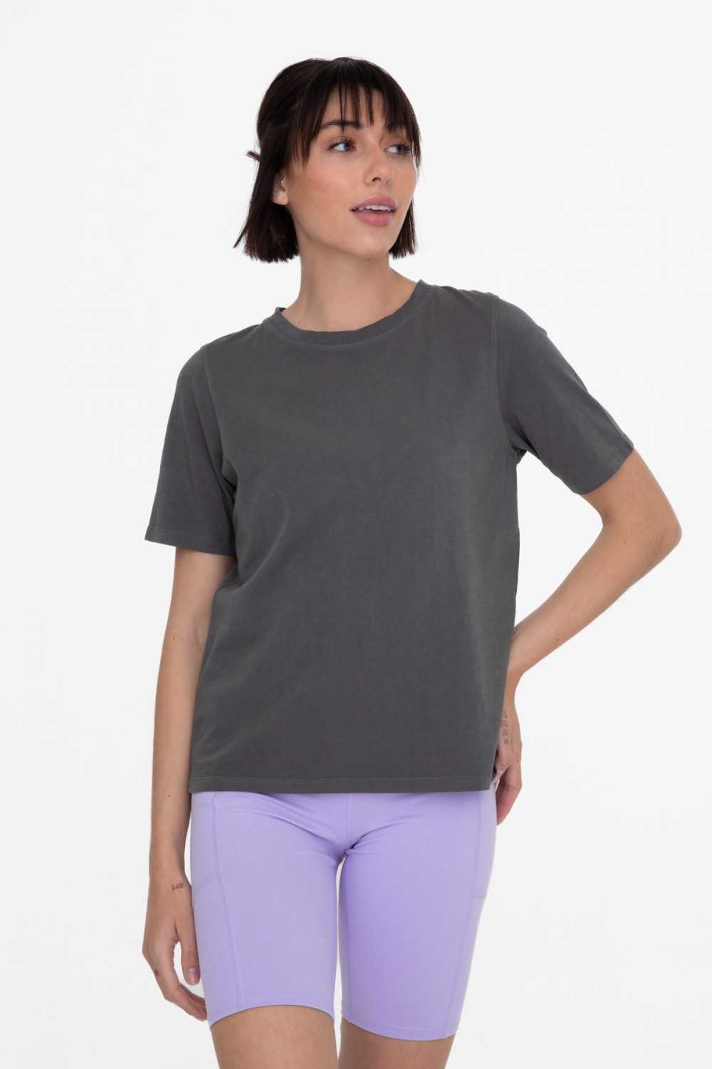 A tried and true classic. This simple tee is made with supima cotton that is pigment dyed for a rich color and features a boxy fit and ribbed neckline.