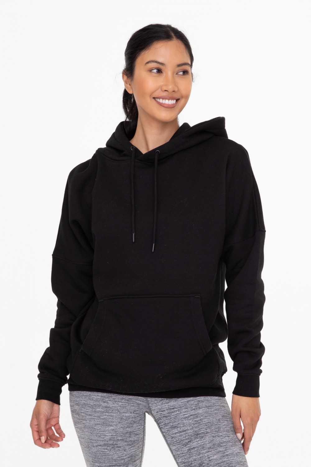 Ultra-cozy and a wardrobe essential, this longline fleece hoodie features a slim fit, a kangaroo pocket, an adjustable drawcord at the hood, and a brushed fleece inside.
