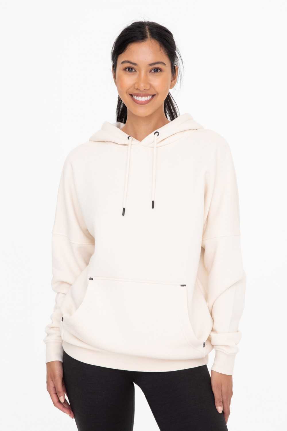 Ultra-cozy and a wardrobe essential, this longline fleece hoodie features a slim fit, a kangaroo pocket, an adjustable drawcord at the hood, and a brushed fleece inside.