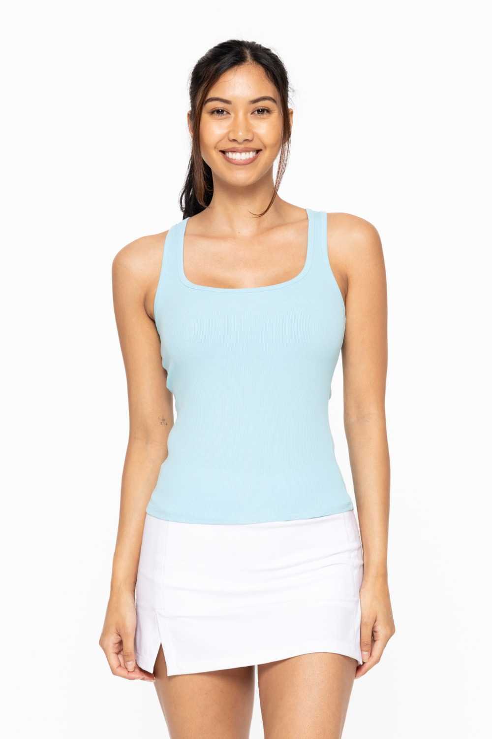 Made from a rayon blend for a soft touch, this classic rib tank top is your next go to piece. The square neck and slim strap combination is ultra flattering and makes this piece perfect for layering.