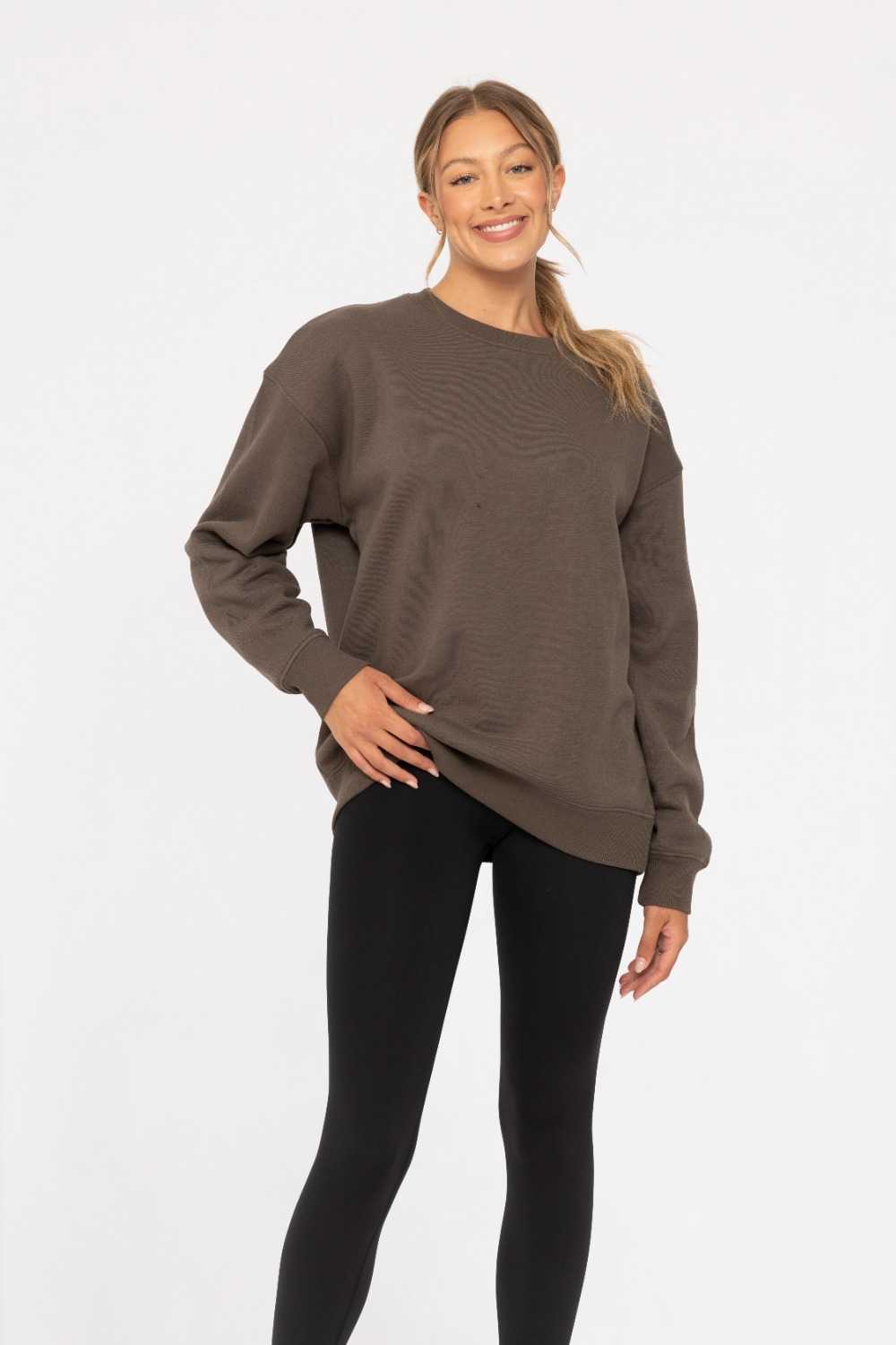 Complete your cozy look with our oversized boyfriend pullover. Perfectly pairs with fleece pants. Made with Mono B's favorite fleece fabric, featuring a soft brushed inside, timeless styling, and an oversized fit for ultimate comfort.