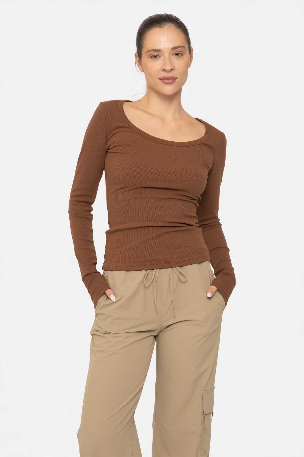 Product name Slim Fit Scoop Neck Long Sleeve Top Cocoa dust