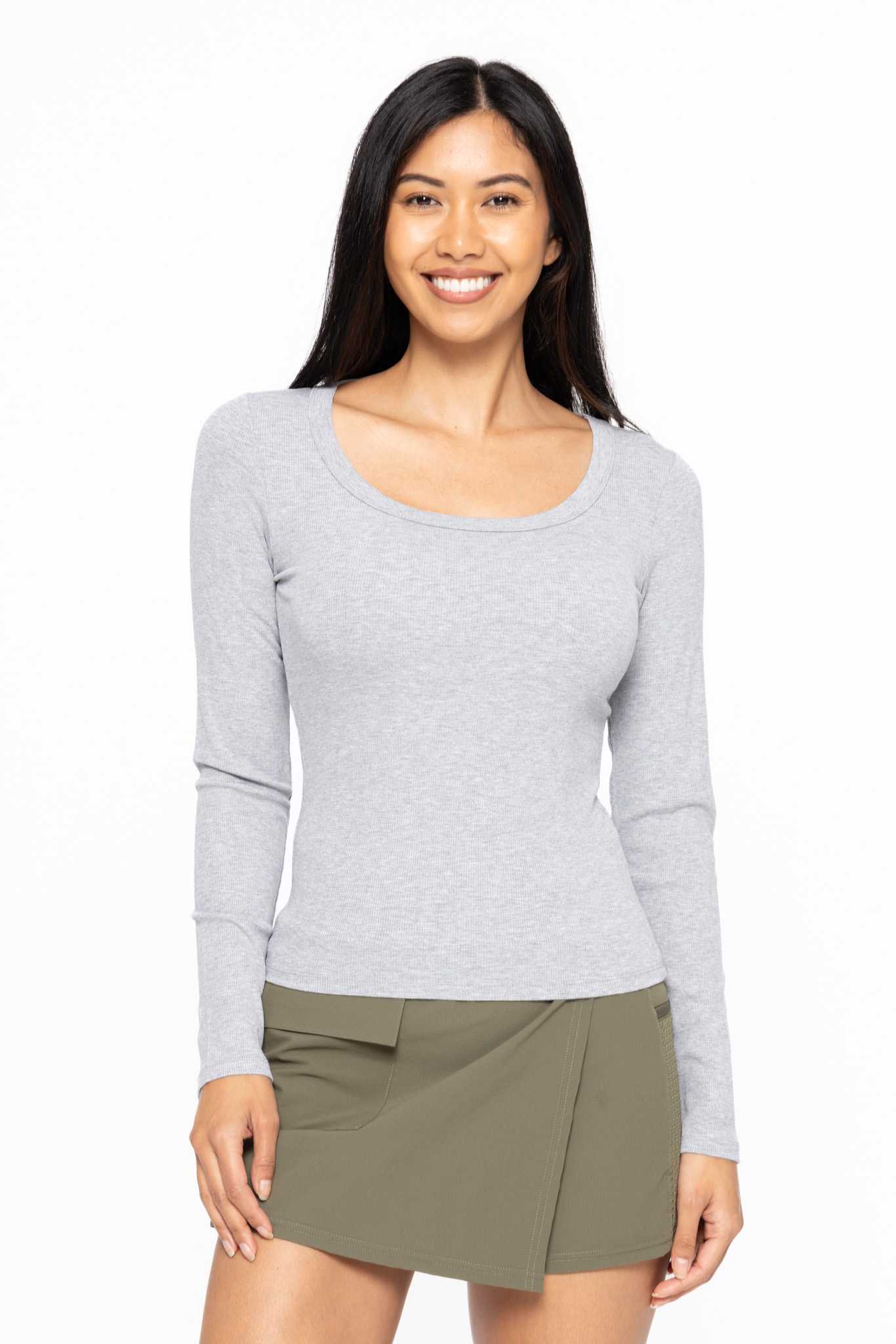 Slim Fit Scoop Neck Long Sleeve Top Heather grey