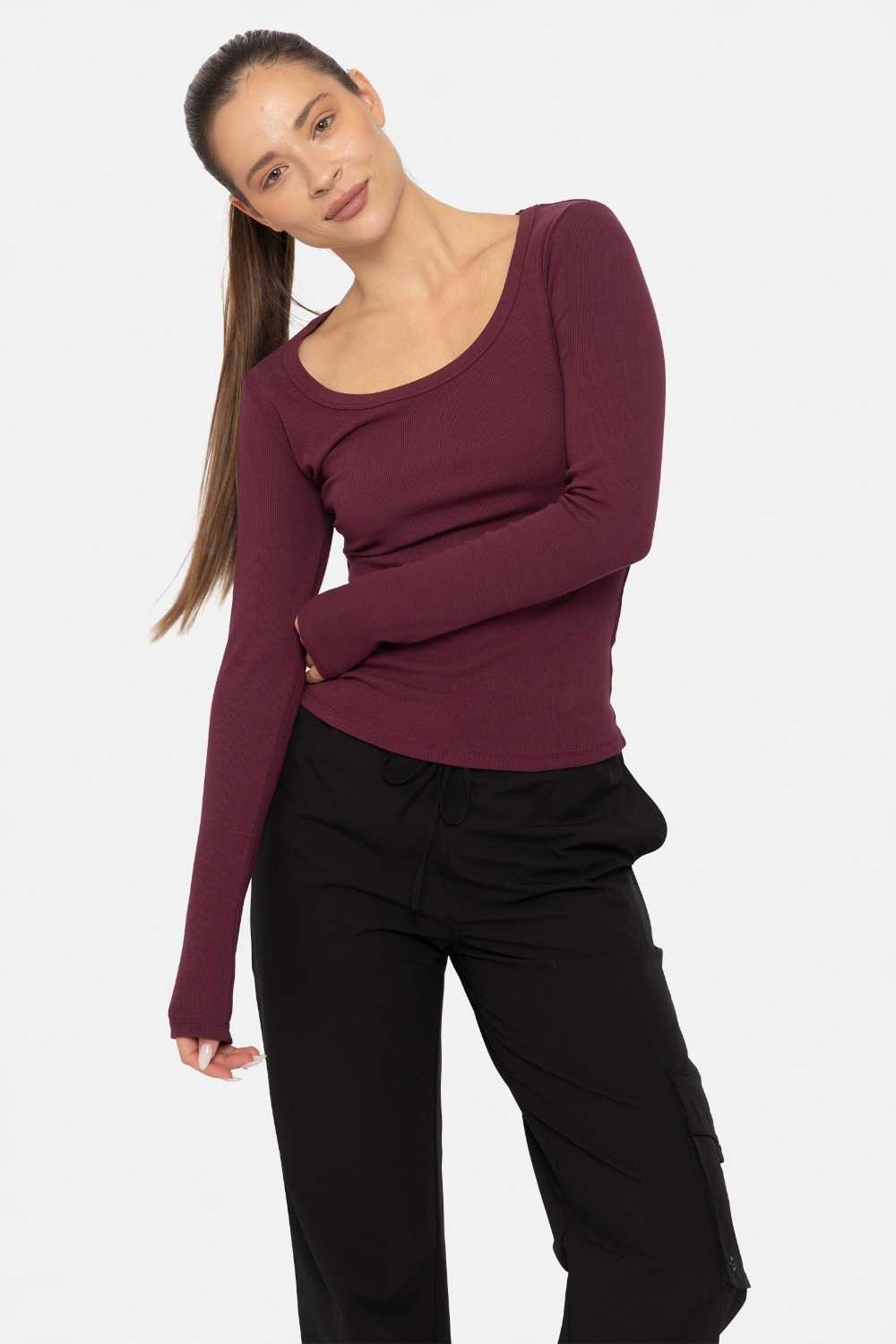 Slim Fit Scoop Neck Long Sleeve Top Plum 24
