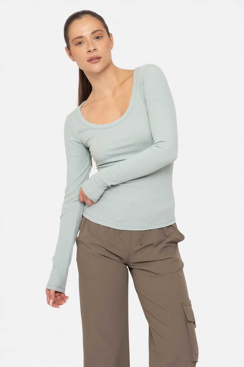 Made from a light weight, breathable, and stretchy rayon spandex blend rib knit fabric, this long sleeve top is perfect for when the weather starts to cool down! It features a 4-way stretch for the best fit, a longer length, a scoop neck, long sleeves, and a slim fit. Wear as a layering piece or on its own!