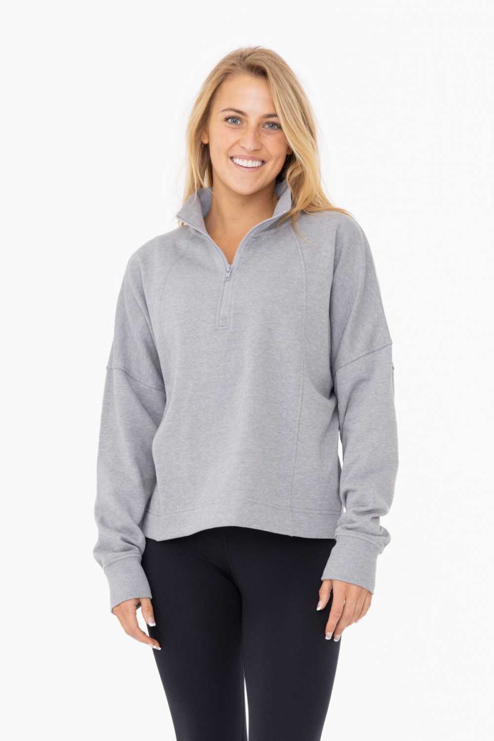 Cozy up in our fleece half-zip with a brushed inside, dolman-style sleeves, princess panels, a ribbed high neck, and a relaxed boxy fit.