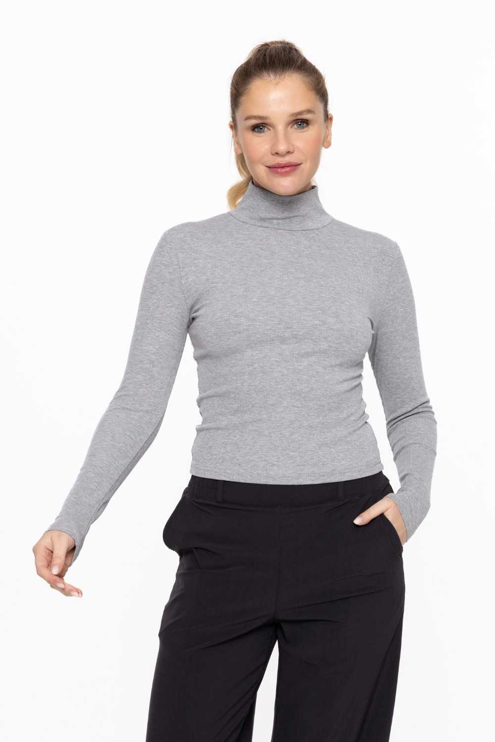 MICRO RIBBED LONG SLEEVE TURTLENECK Heather grey
