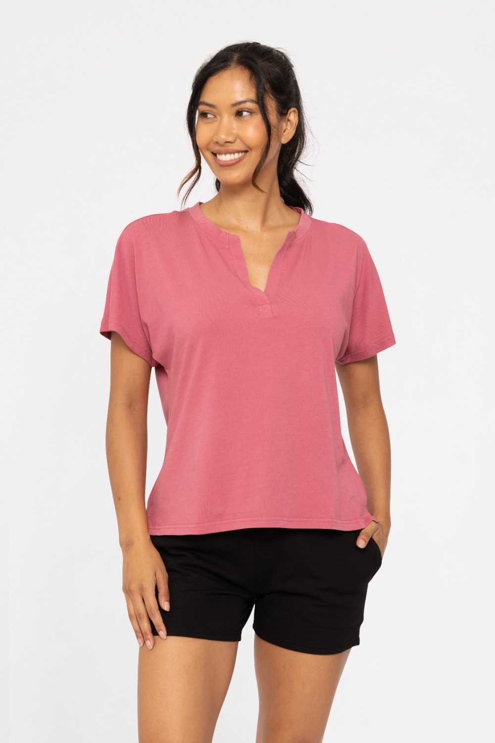 Pima Cotton Henley Tee Soft magenta