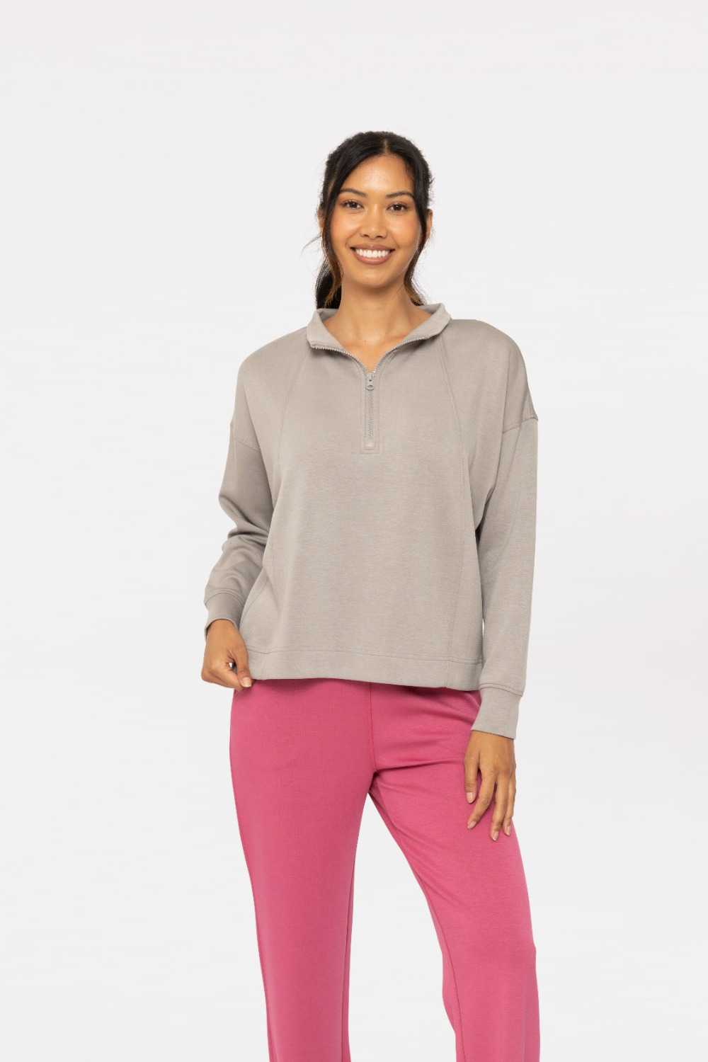 Meet your new go-to layer. This lightweight pullover is designed for both performance and style, featuring our bestseller scuba fabric that moves with you. The drop shoulder design offers a relaxed fit, while the princess seam detailing down the front adds a touch of feminine flair. Whether you're heading to the gym or out for a casual day, this pullover blends versatility and chic appeal.