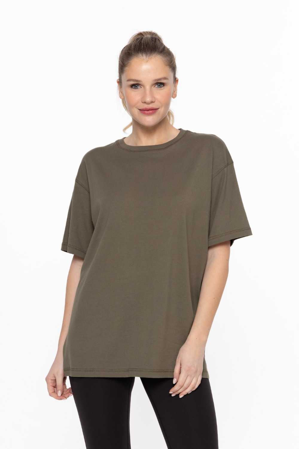 Introducing the newest fabric to our line: 100% organic cotton! This classic short sleeve t-shirt comes in a comfortable boxy oversized boyfriend fit. The fabric has a super soft handfeel and is topped of with a ribbed neckline.