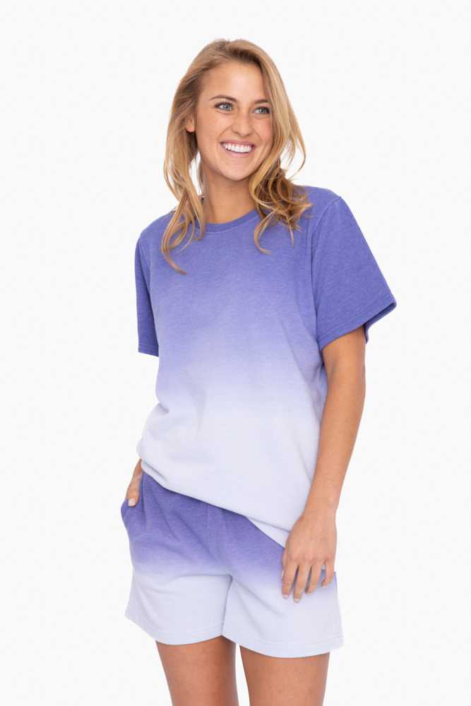 Crafted using a soft and drapey Terry fabric, this oversized boyfriend tee will elevate your loungewear. It features 2-way stretch and is hand dip-dyed for a beachy ombre print.