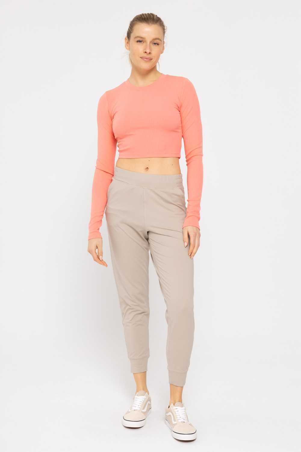 Essential Micro-Ribbed Long-Sleeved Cropped Athleisure Top Watermelon