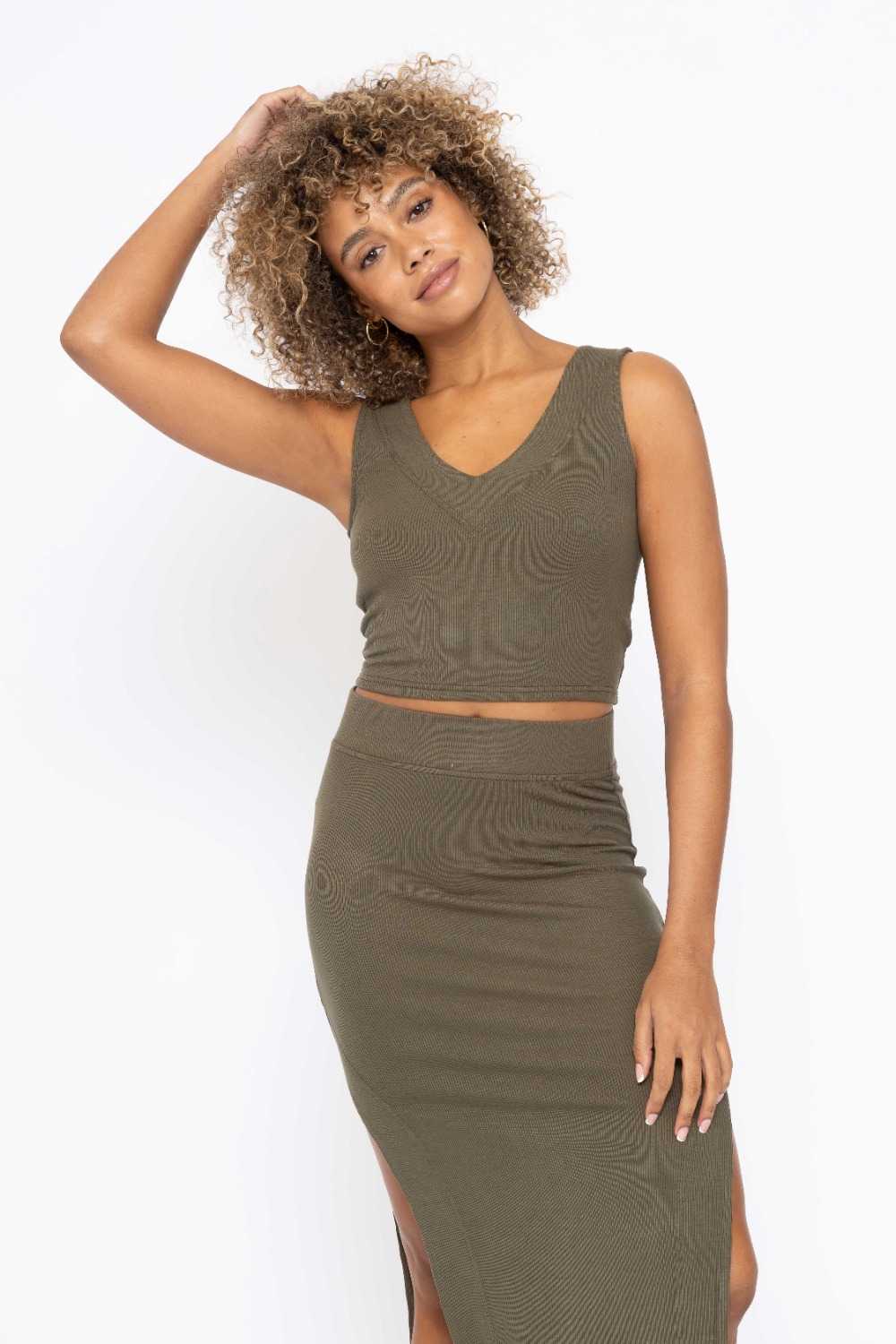 Ribbed V-Neck Cropped Tank Top Ivy green